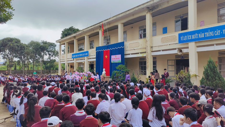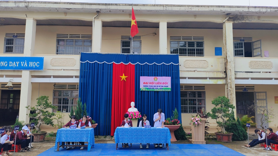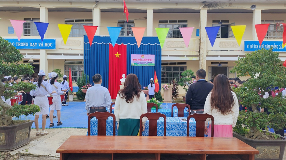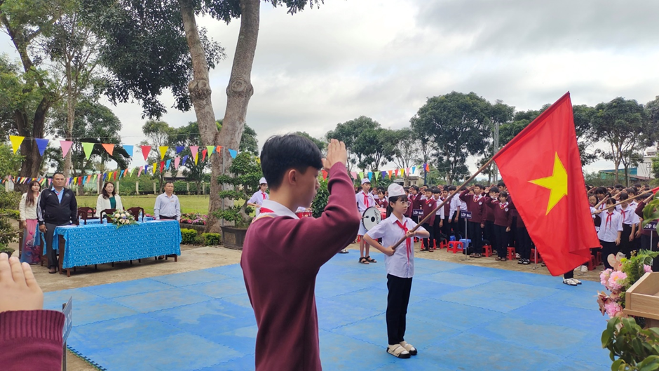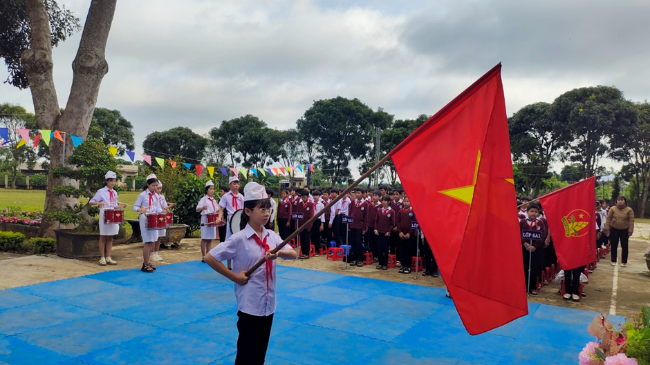 🎈 Nghi thức khai mạc trang trọng Đại hội có sự tham dự của Ban giám hiệu nhà trường, đại biểu xã, giáo viên chủ nhiệm các khối lớp 6, 7, 8, 9 cùng các đội viên tiêu biểu đại diện cho toàn Liên đội. Phần nghi thức khai mạc diễn ra trang nghiêm với lễ chào cờ, phút sinh hoạt truyền thống và hô đáp khẩu hiệu Đội, mở đầu cho không khí sôi nổi của chương trình. Nghi thức chào cờ và sinh hoạt truyền thống mở đầu Đại hội