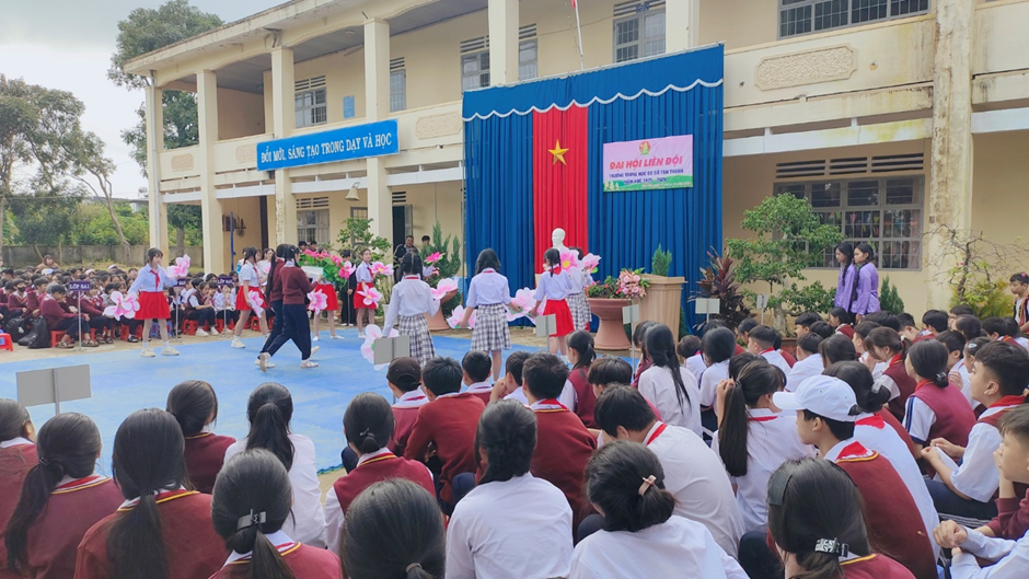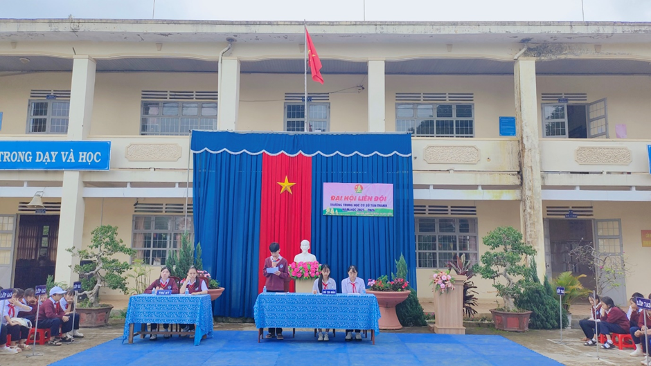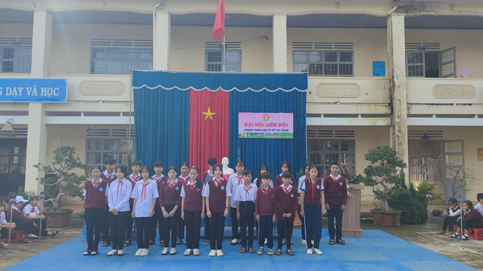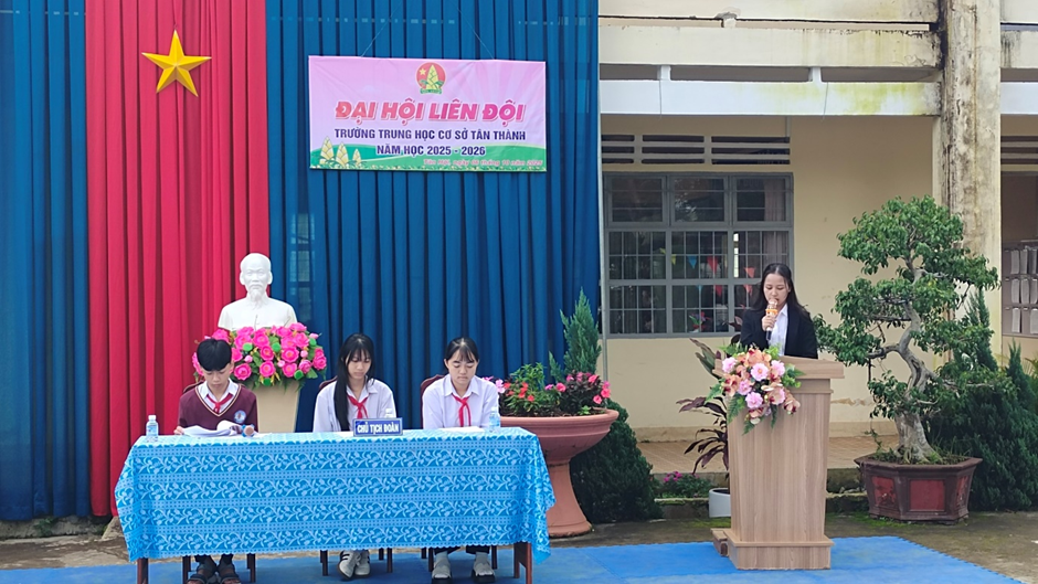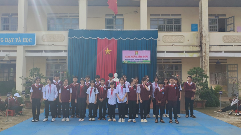 Đại diện hội đồng đội xã Tân Hội cũng phát biểu, ghi nhận những đóng góp của công tác Đội nhà trường trong phong trào thiếu nhi toàn xã, đồng thời gửi lời chúc mừng thành công đến Đại hội. 🧭 Bầu Ban Chỉ huy Liên đội nhiệm kỳ mới Đại hội đã tiến hành bầu Ban Chỉ huy Liên đội năm học 2025 – 2026 với tinh thần dân chủ, nghiêm túc. Danh sách Ban Chỉ huy Liên đội mới đã được công bố và ra mắt trước toàn thể đại biểu. Ban Chỉ huy Liên đội nhiệm kỳ 2025 – 2026 ra mắt Đại hội Đại hội kết thúc trong không khí phấn khởi, thể hiện quyết tâm của tập thể đội viên, phụ trách Đội và giáo viên toàn trường trong việc xây dựng Liên đội ngày càng vững mạnh. ✨Đại hội Liên đội Trường THCS Tân Thành năm học 2025 – 2026 đã thành công tốt đẹp, thiết thực chào mừng Đại hội đại biểu Đảng bộ tỉnh Lâm Đồng lần thứ I, nhiệm kỳ 2025 – 2030.