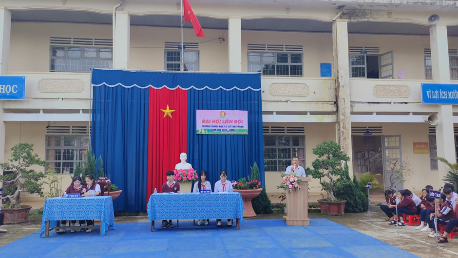 🗣️ Phát biểu chỉ đạo, chào mừng Đại hội Đảng bộ tỉnh Lâm Đồng Phát biểu tại Đại hội, thầy Giang Công Biên – Bí thư Chi bộHiệu trưởng nhà trường đã ghi nhận những nỗ lực, thành tích mà Liên đội đạt được trong năm học qua; đồng thời định hướng các hoạt động trọng tâm cho năm học 2025 – 2026. Thầy nhấn mạnh tinh thần đoàn kết, sáng tạo và trách nhiệm của đội viên, gắn kết phong trào thiếu nhi nhà trường với những sự kiện chính trị quan trọng của địa phương, đặc biệt ra sức thi đua Chào mừng Đại hội đại biểu Đảng bộ tỉnh Lâm Đồng lần thứ I, nhiệm kỳ 2025 – 2030, dấu mốc mở ra giai đoạn phát triển mới cho toàn tỉnh.