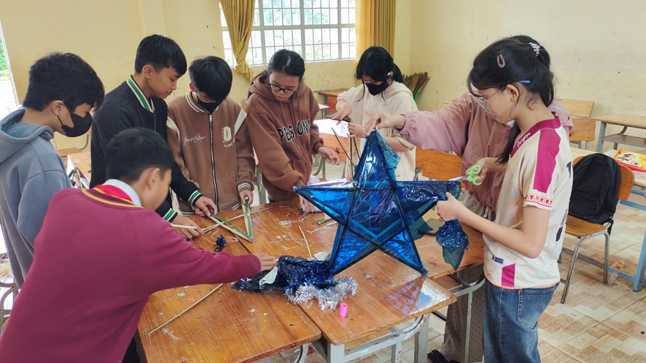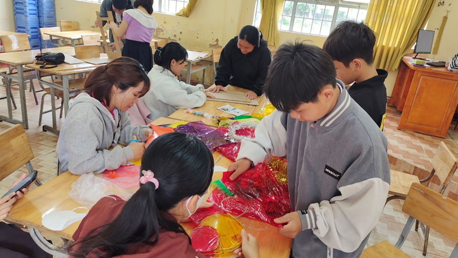 🌸 Sôi nổi trong công tác chuẩn bị Ngay từ cuối tháng 9, không khí Trung thu đã lan tỏa khắp sân trường. Giáo viên và học sinh các khối lớp 6, 7, 8, 9 tích cực tham gia làm lồng đèn, sắp xếp mâm cỗ và trang trí gian hàng theo đúng yêu cầu của Ban tổ chức. Thầy cô và học sinh cùng nhau chuẩn bị vật liệu trang trí lồng đèn và mâm cỗ