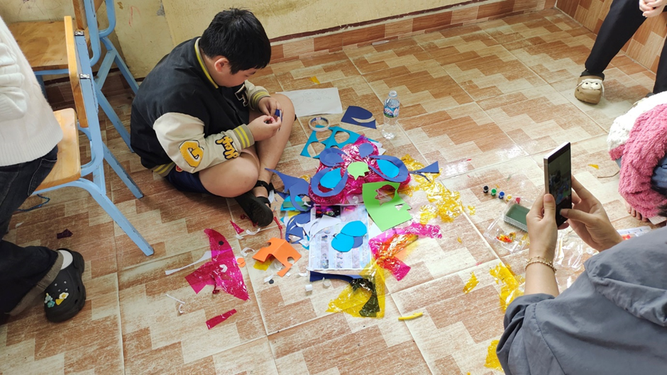 Phụ huynh cùng học sinh và giáo viên phối hợp chuẩn bị gian hàng